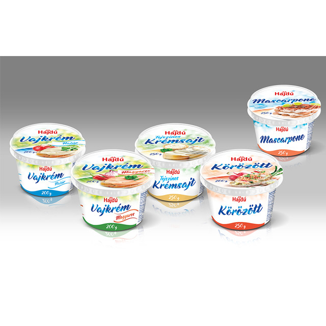 A Kőröstej megbízásából készítettünk új csomagolásterveket a Hajdú kenhető tejtermékekhez.