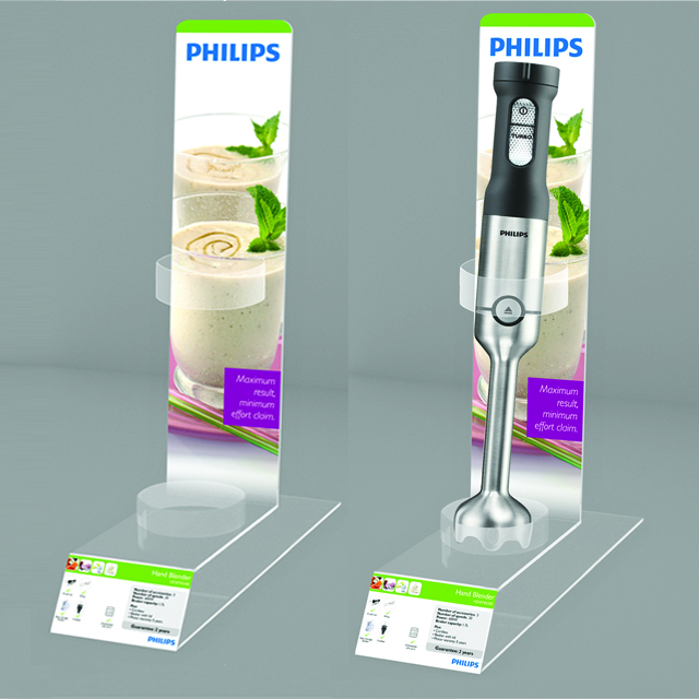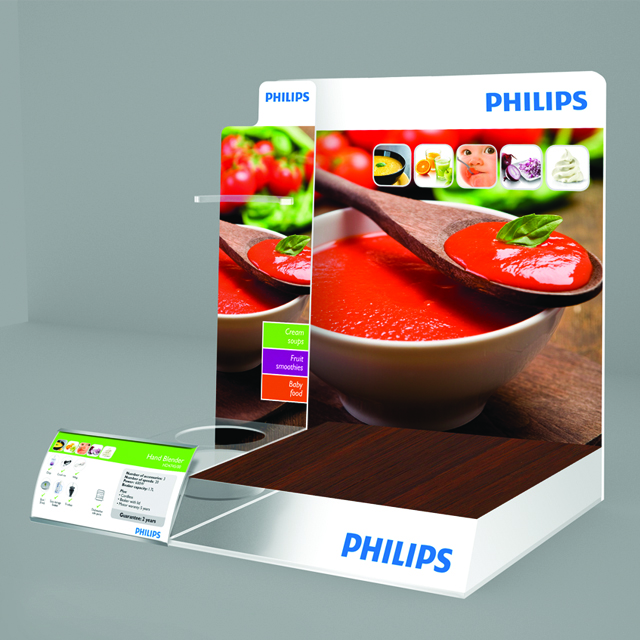 A Philips felkérésére készült POS anyagok megtervezésekor szükség volt a kreativitásra és a több éves gyártási tapasztalatunkra.